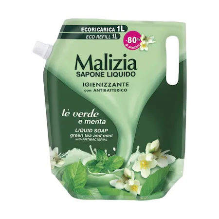 Malizia folyékony szappan 1000ml Green tea & Mint with Antibacterial Cikkszám: 159 Vonalkód: 8003510033041 Rendelési egység: db Kiszerelés: 10 db / karton ; Bezárás
